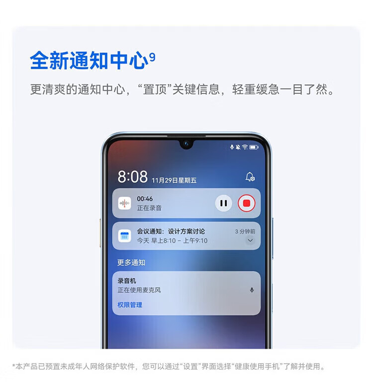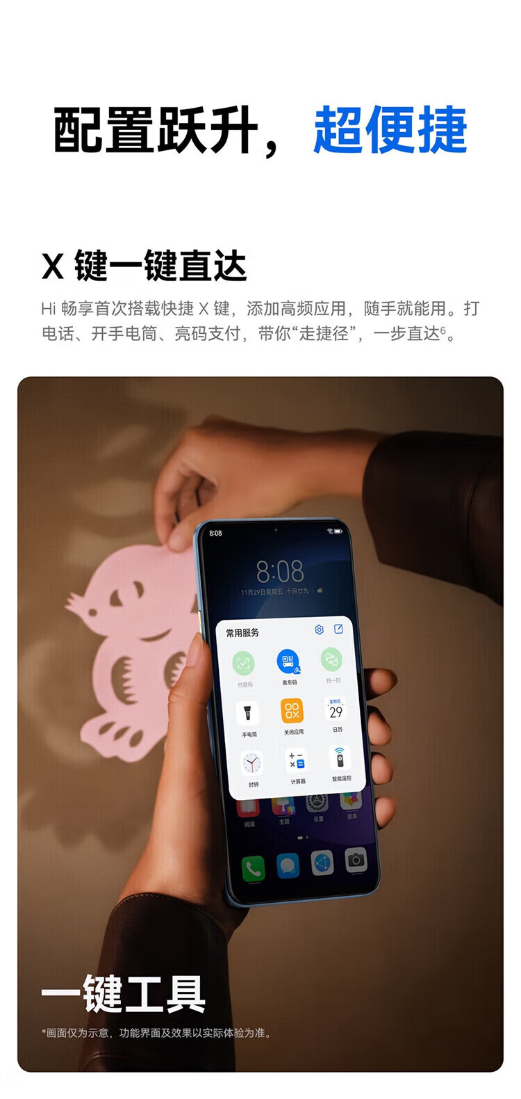 • 包装清单:手机(内置电池)× 1、充电器 × 1、USB Type-C 数据线 × 1、快速指南 × 1、取卡针 × 1、保护膜(已出厂贴膜于手机)× 1 、保护壳 × 1