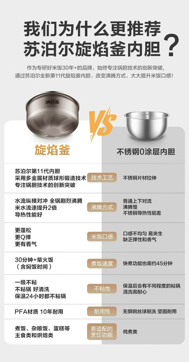 商品名称:苏泊尔(SUPOR)旋焰釜蓬蓬煲电饭煲5-8个人大容量4升远红外IH加热蒸煮一体多功能电压力煲电饭锅SF40Q51