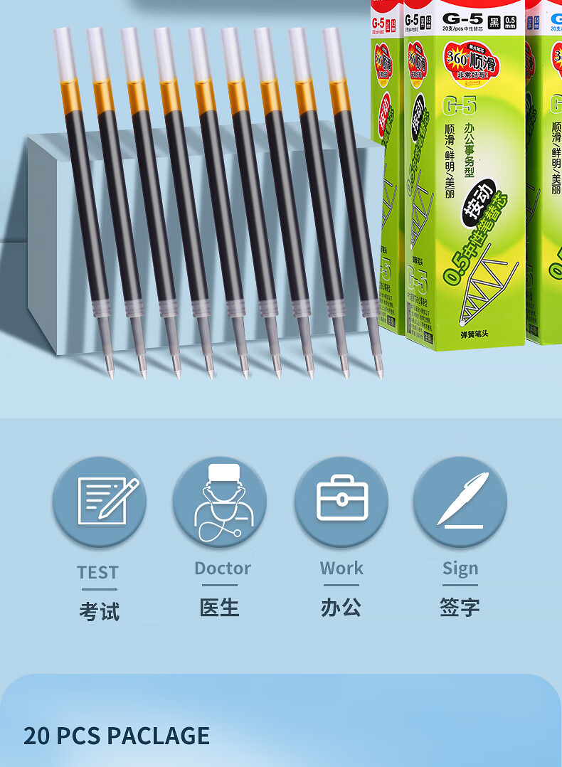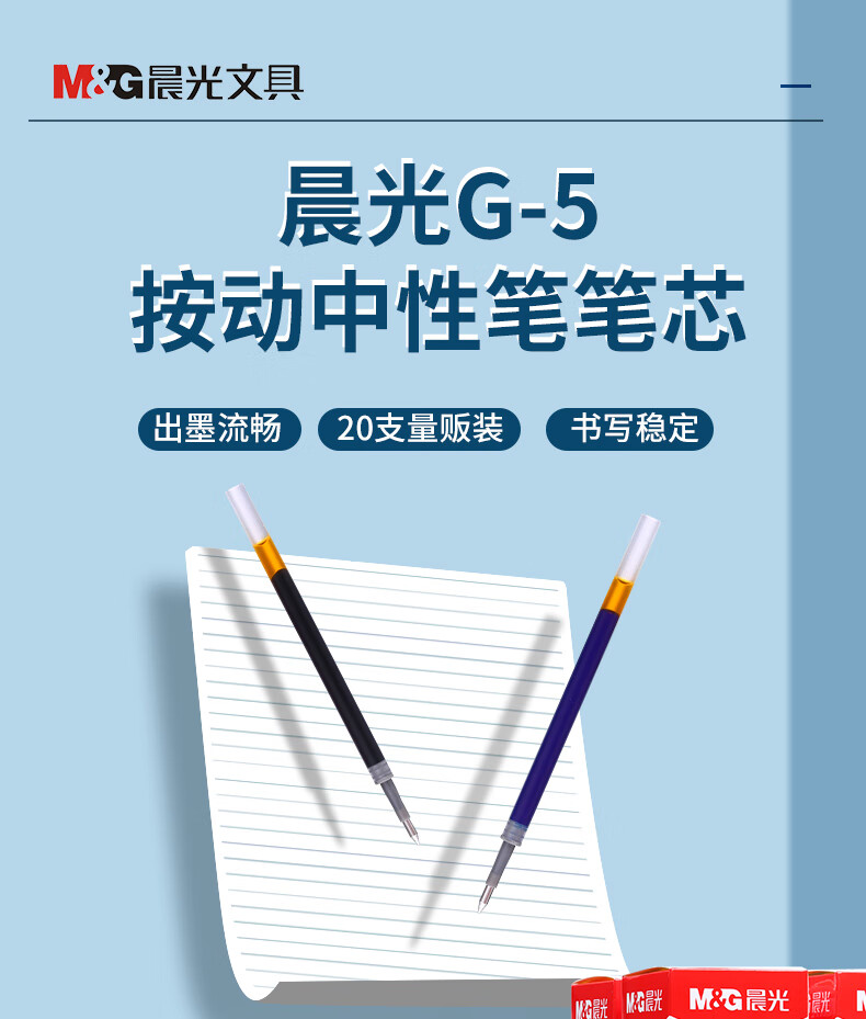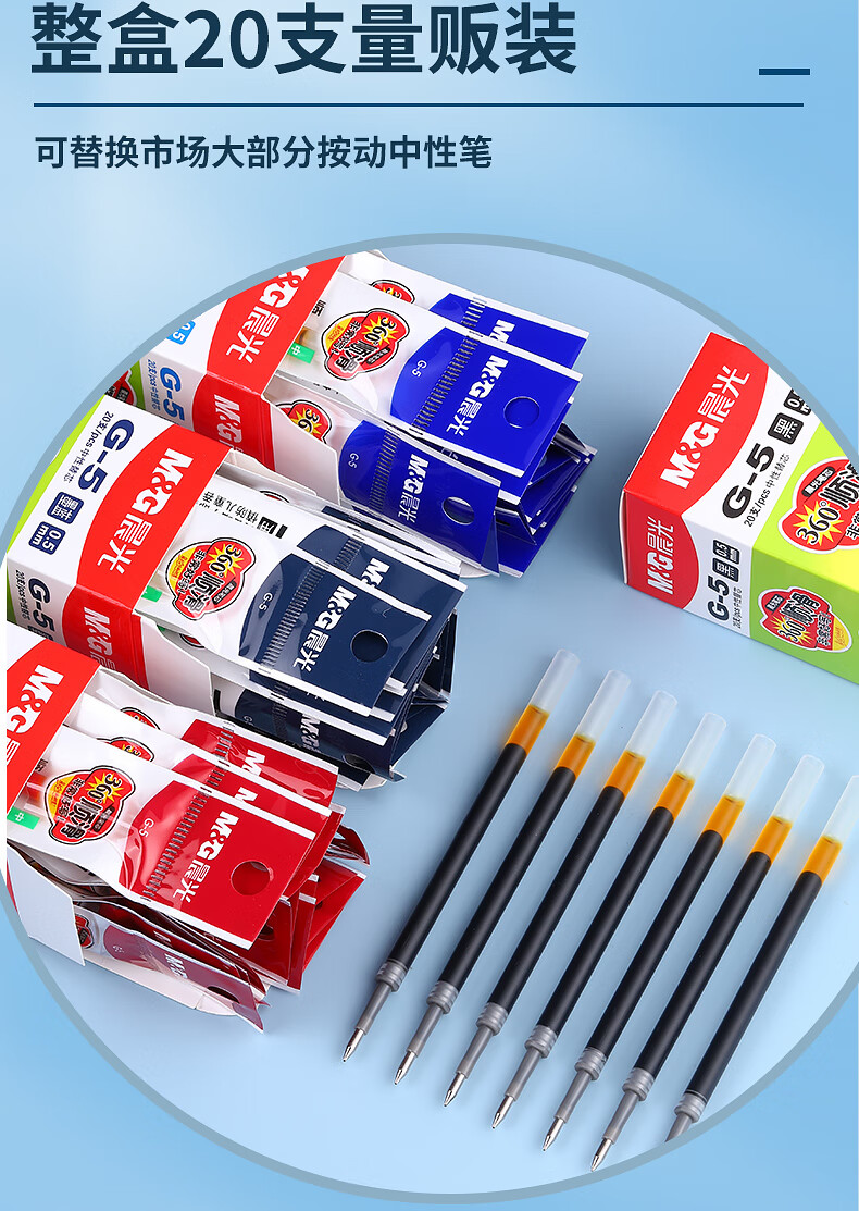 商品名称:晨光(M&G)【热门商品】按动中性笔替芯G-5子弹头0.5按动签字笔k35中性笔办公学生考试用笔芯【黑色20支】1盒