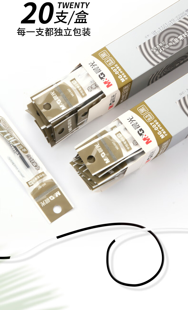 商品名称:晨光(M&G)中性笔替芯0.5mm子弹头黑色水性签字笔办公商务学生用考试专用刷题碳素笔笔芯MG007黑笔芯20支