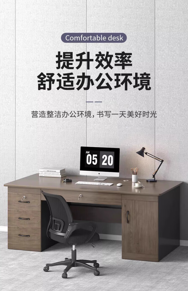 商品名称:办公桌带抽屉职员双人桌椅组合工位简约办公室台式电脑桌子 三抽带主机位黑胡桃色120CM