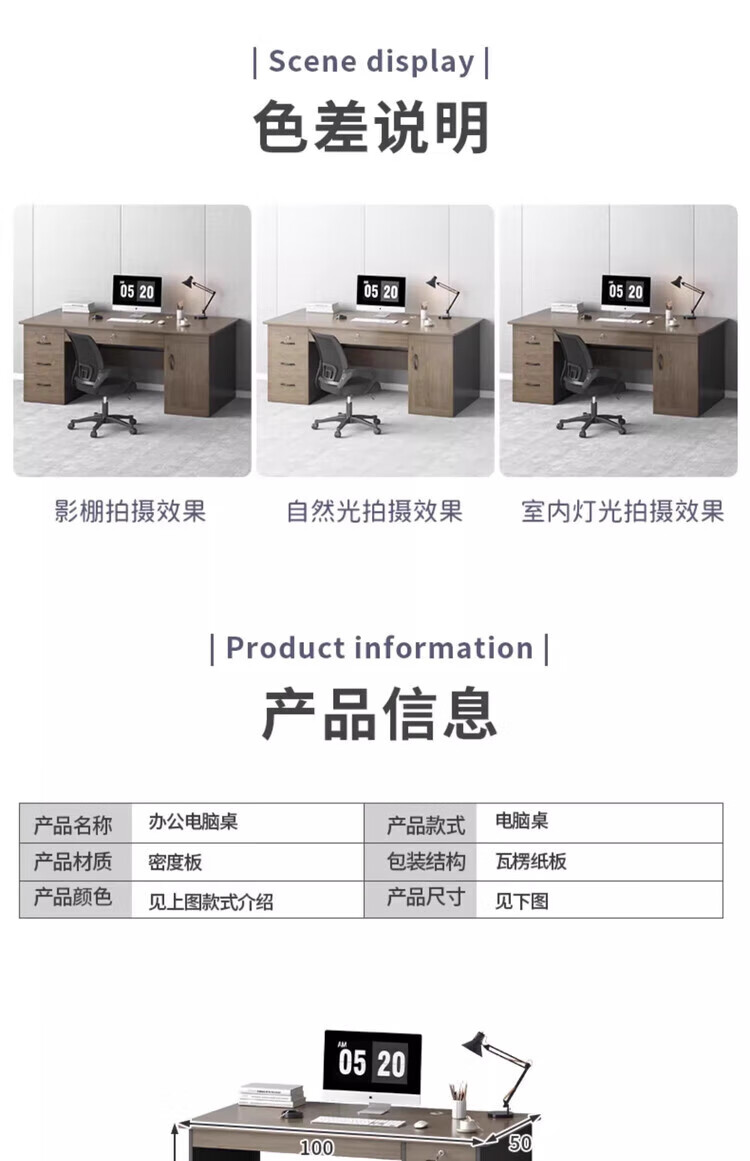 商品名称:办公桌带抽屉职员双人桌椅组合工位简约 办公室台式电脑桌子 三抽带柜门 黑胡桃色120CM