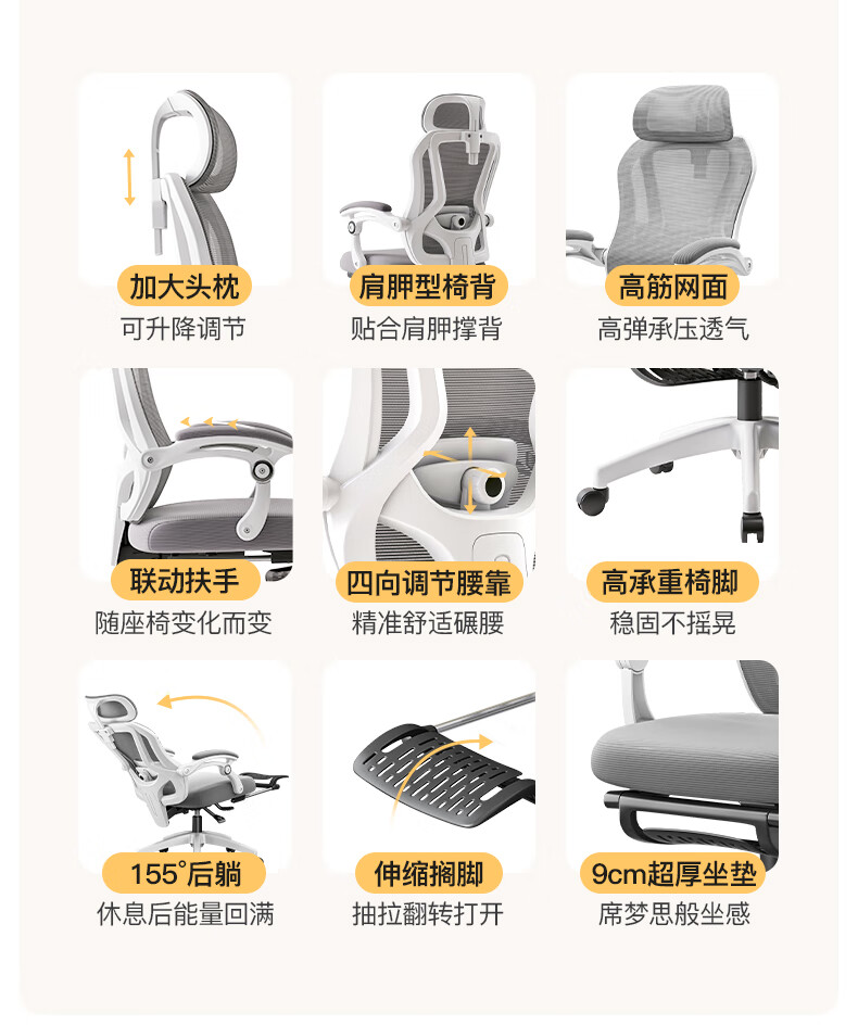 商品名称:人体工学椅子电竞椅办公椅可躺电脑椅人工力学座椅 黑色-3级气杆-尼龙脚