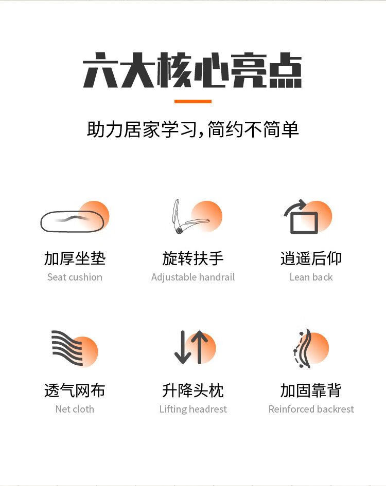 商品名称:电脑椅家用人体工学椅子办公椅靠背学生学习写字书房椅