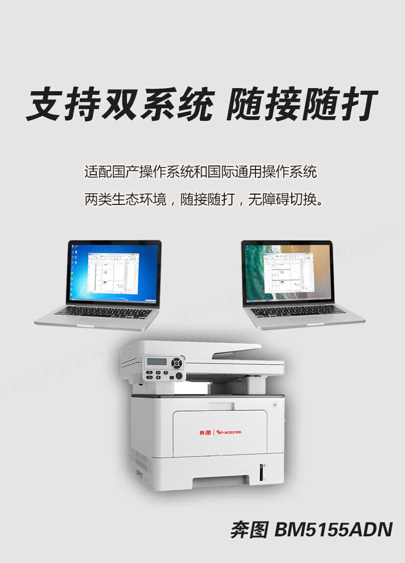 商品名称:奔图(PANTUM)BM5155ADN打印机黑白A4激光多功能一体机商用打印复印扫描保密安打印机适配国产操作系统