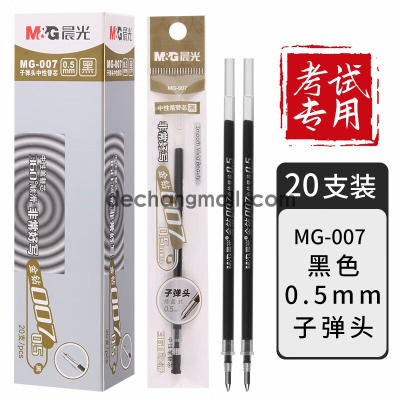 商品名称:晨光(M&G)中性笔替芯0.5mm子弹头黑色水性签字笔办公商务学生用考试专用刷题碳素笔笔芯MG007黑笔芯20支